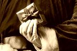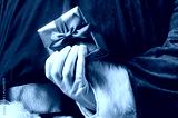 Santa Claus holding Christmas or New Year gift behind his back