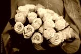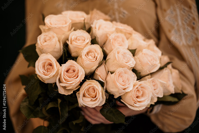 Elegant Bouquet of Cream Roses Held by Person in Traditional Attire