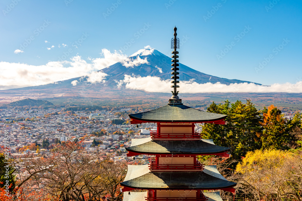 Chureito Pagoda and Mount Fuji in autumn, Japan