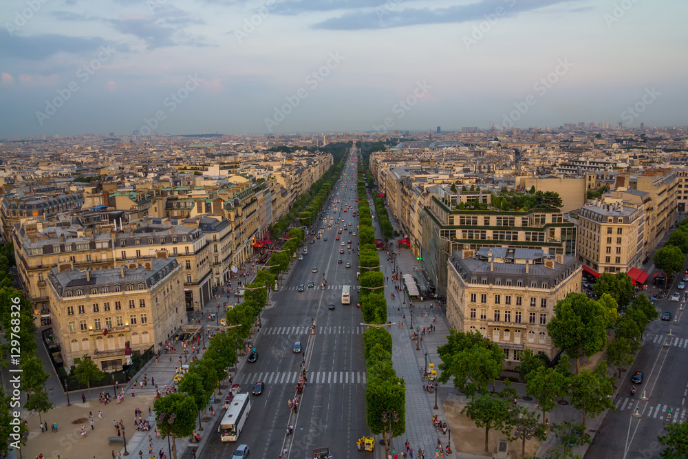 Aerial view of Paris skyline with Tour Eiffel in background