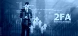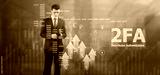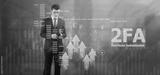 2FA. Light charts background Vol.1 A man in a business suit stands tall. He uses a mobile phone.