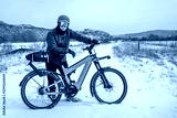 senior male cyclist with a touring electric bike in Colorado foothills in winter scenery