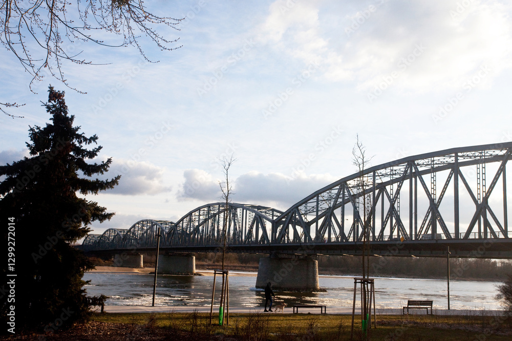 Spacer z psem nad Wisłą, kry lodowe, Toruń, Poland, Walking with a dog on the Vistula River, ice floes, Toruń, Poland
