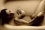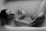 Woman in a bath embracing beauty and body art while relaxing in serene waters
