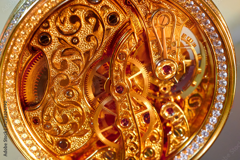 Intricate beauty of a golden watch mechanism capturing the elegance of precision engineering in macro detail