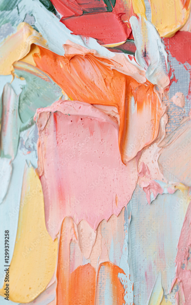 Oil painting fragments showcasing vibrant colors and textures created with a palette knife