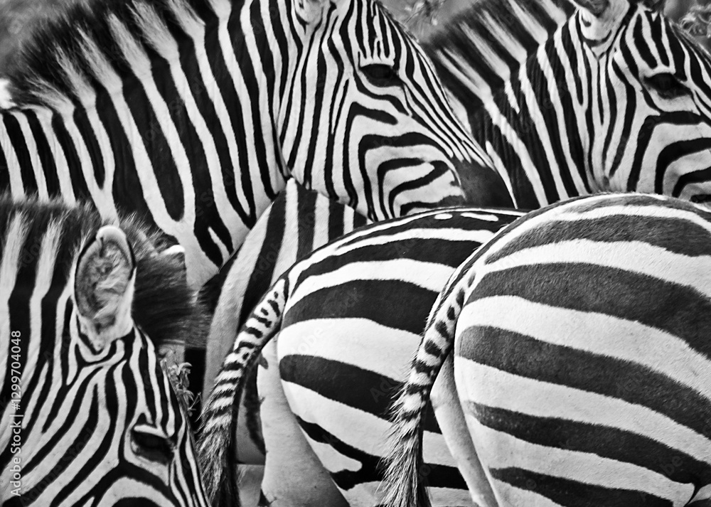 African zebra. Striped Horse in African savannas.
