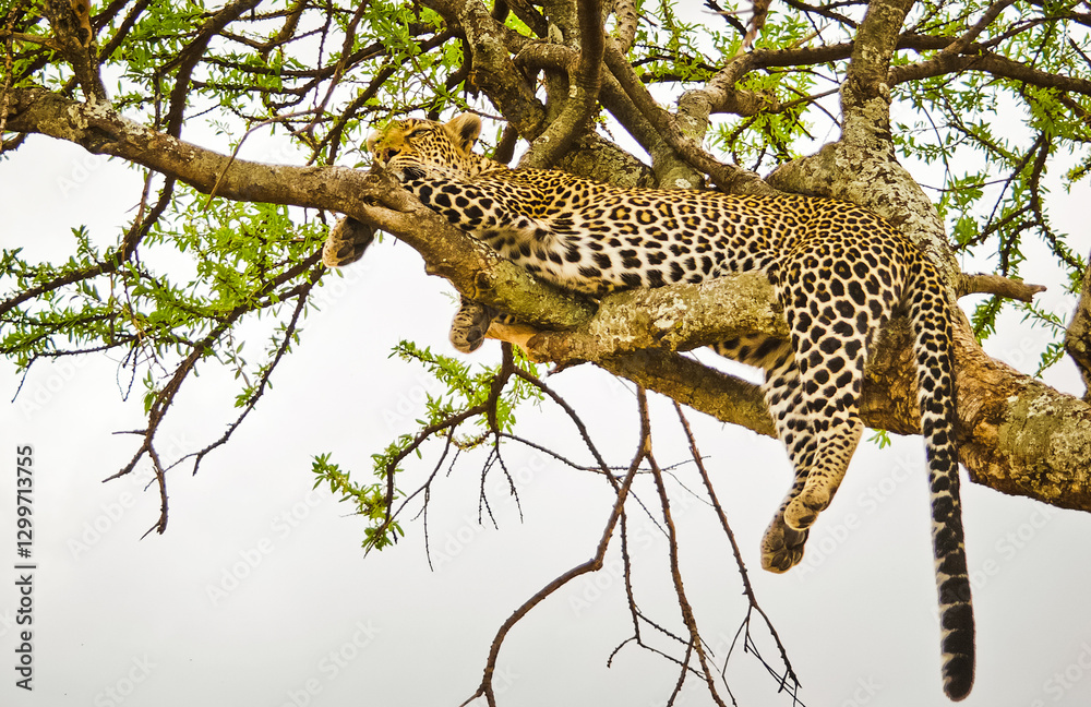 Leopard on a tree in its natural habitat in the African savannah
