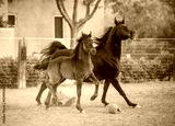 Arabian horse mare with cross bred foal