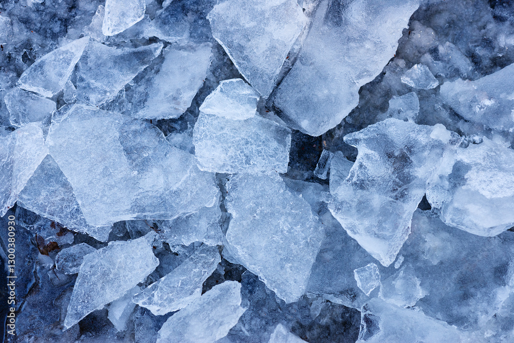 Cracked and broken ice background texture. Sharp, sparkling ice shards.