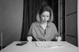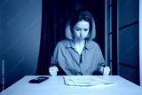 Angry Woman Reviewing Utility Bills and Financial Documents
