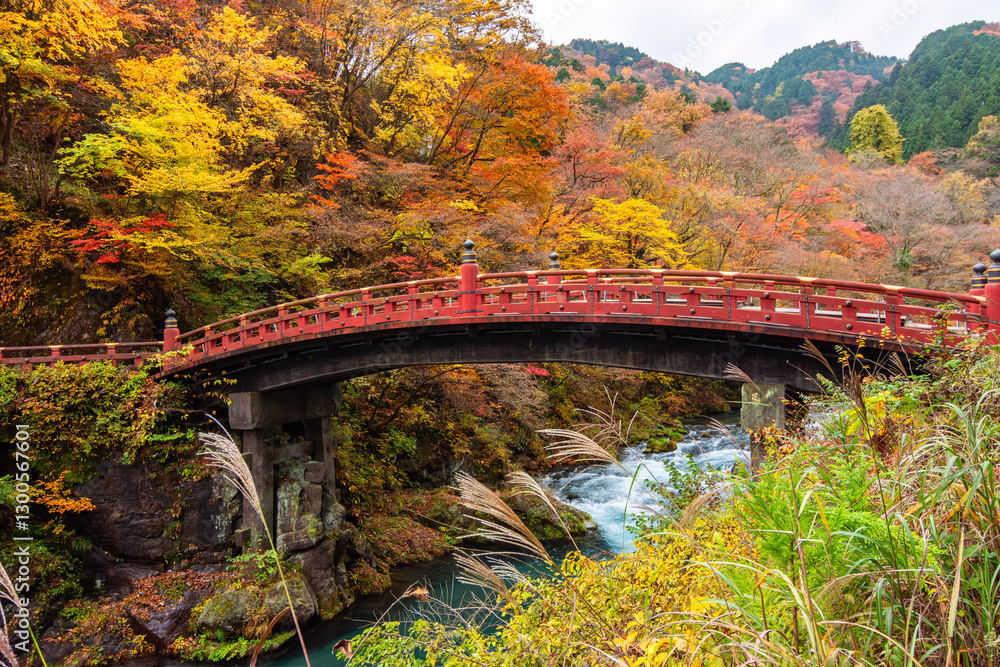 Famous Shinkyo bridge in autumn, Nikko, Japan