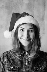 Christmas celebration portrait of young adult happy woman wearing Santa hat
