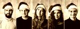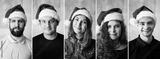 Group of people celebrating Christmas or New Year wearing Santa hat