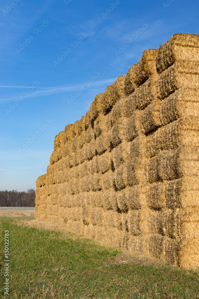 Stacked bales of straw
