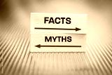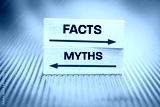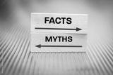 Facts vs. Myths. Concept, Reliability and Disinformation, Information against Fake News. Written on wooden blocks, fiery background