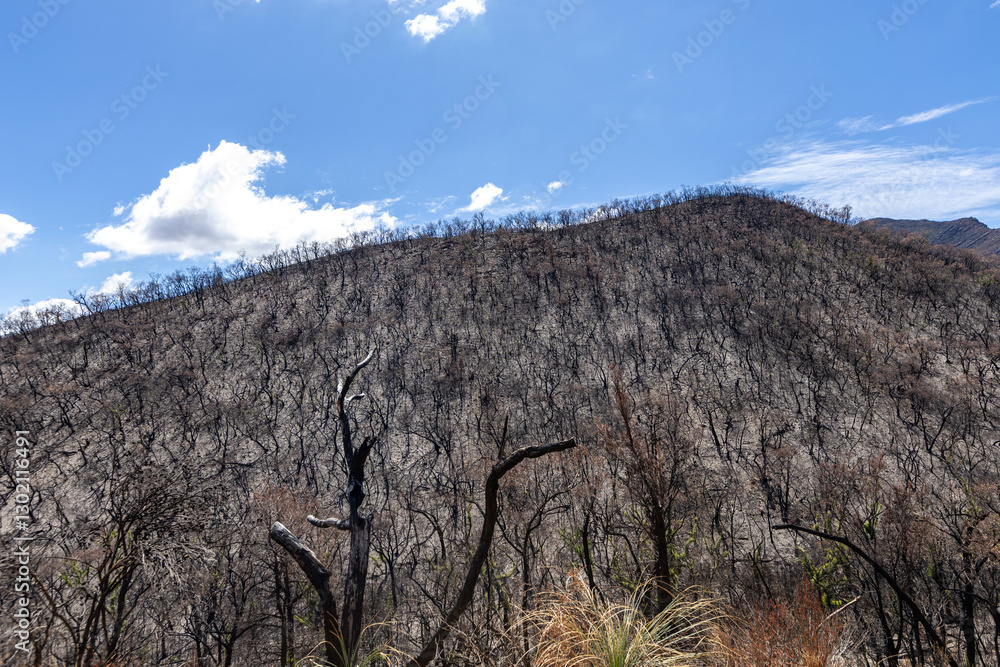 Bushfire damage from the 2025 bushfires started by lightning strikes in the Grampians (Gariwerd) National Park.