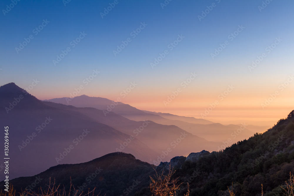 smoky sunset in the mountains