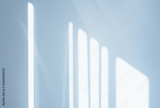 Abstract blue background with shadow and light on wall concrete texture, Empty backdrop for product presentation,Studio wall room kitchen with sunlight window frame reflection .Minimalist background