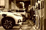 EV charging station electric car, Electric car charging station for charge EV battery, Plug for vehicle with electric engine, EV charger clean energy, Charging point at car parking lot.