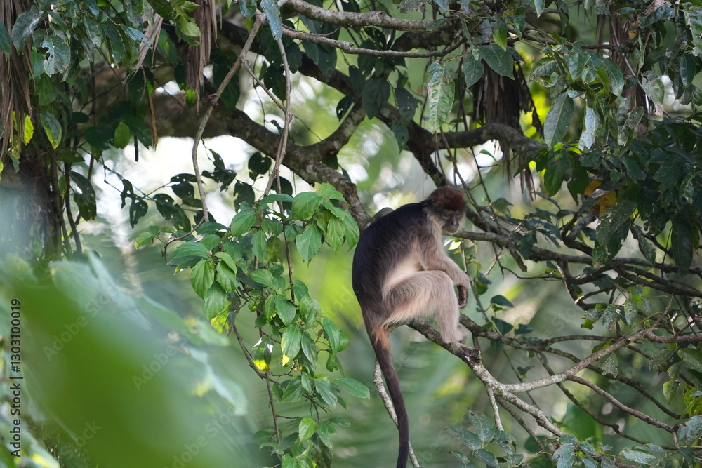 portrait of an ugandese red colobus monkey close up Piliocolobus in nyabubale uganda