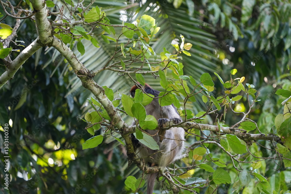 portrait of an ugandese red colobus monkey close up Piliocolobus in nyabubale uganda