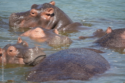 portrait and wallpaper of hippo heads in the hippo pool in the seregenti national park tanzania