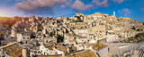 Panoramic view of the ancient town of Matera (Sassi di Matera) in a beautiful autumn day, Basilicata, southern Italy. Stunning view of the village of Matera. Matera is a city on a rocky outcrop.