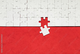 White jigsaw puzzle pieces. Fill in pieces of the jigsaw puzzle. Complete the jigsaw puzzle with the missing pieces. Fragment of a folded white jigsaw puzzle.
