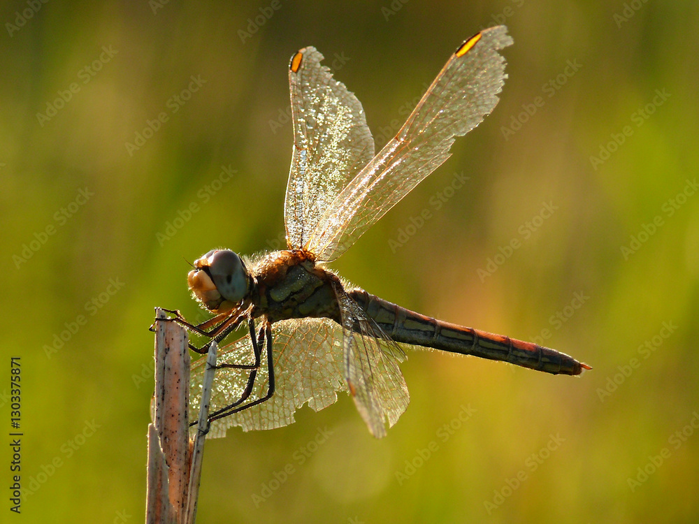 Dragonfly beautiful insect predator in beautiful backlight macro shot