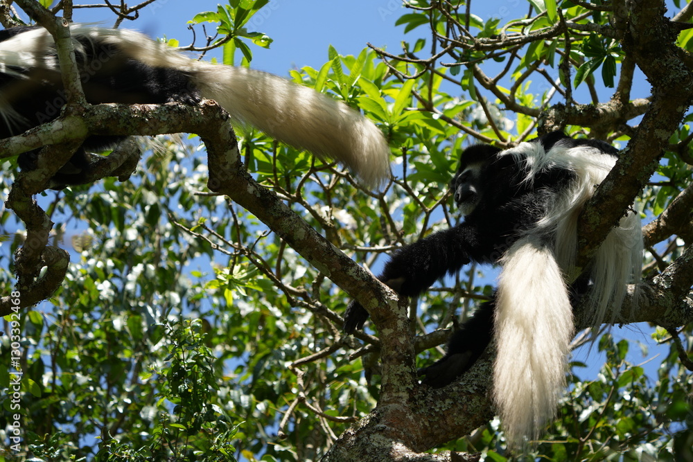 Black-and-White Colobus Monkey in Tree Canopy – Arusha, Tanzania