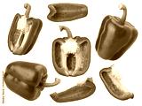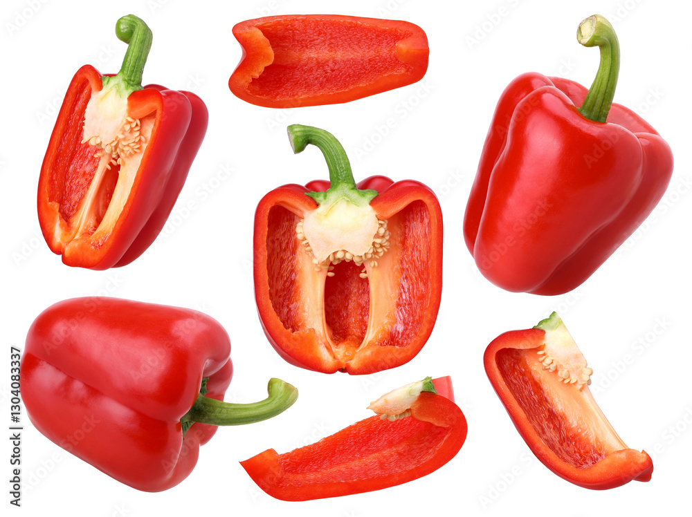 red sweet bell pepper, half and slices isolated, transparent PNG, PNG format, cut out, collection
