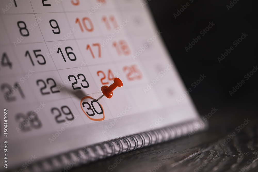 Pinned Important Date on Calendar with Red Pushpin Marking Deadline