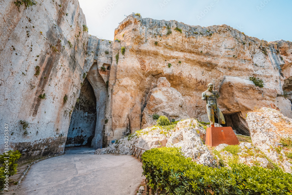 Greek theatre at Archaeological Park of Syracuse Sicily in the Neapolis archaeological park, Italy. Ear of Dionysius