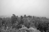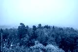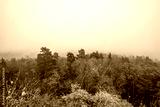 View of a colorful forest in the fog. Landscape in the Palatinate in autumn.