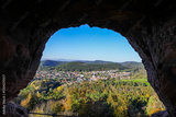 View of the landscape from Drachenfels Castle. Green nature with forests in the Palatinate. Drachenfels Castle ruins near Busenberg.