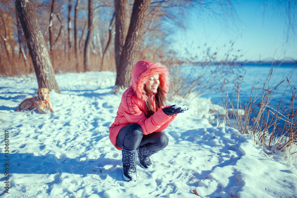 portrait of beautiful winter girl happy smiling enjoy winter hol