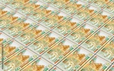 Eastern Caribbean dollar bills stacked background. 3D illustration.