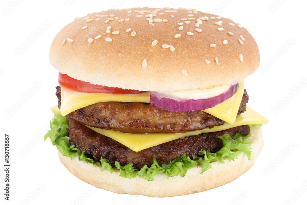 Double Cheeseburger Hamburger Käse Tomaten Salat Freisteller fr