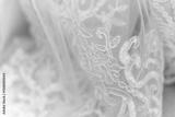 Close-up of white lace wedding dress fabric