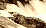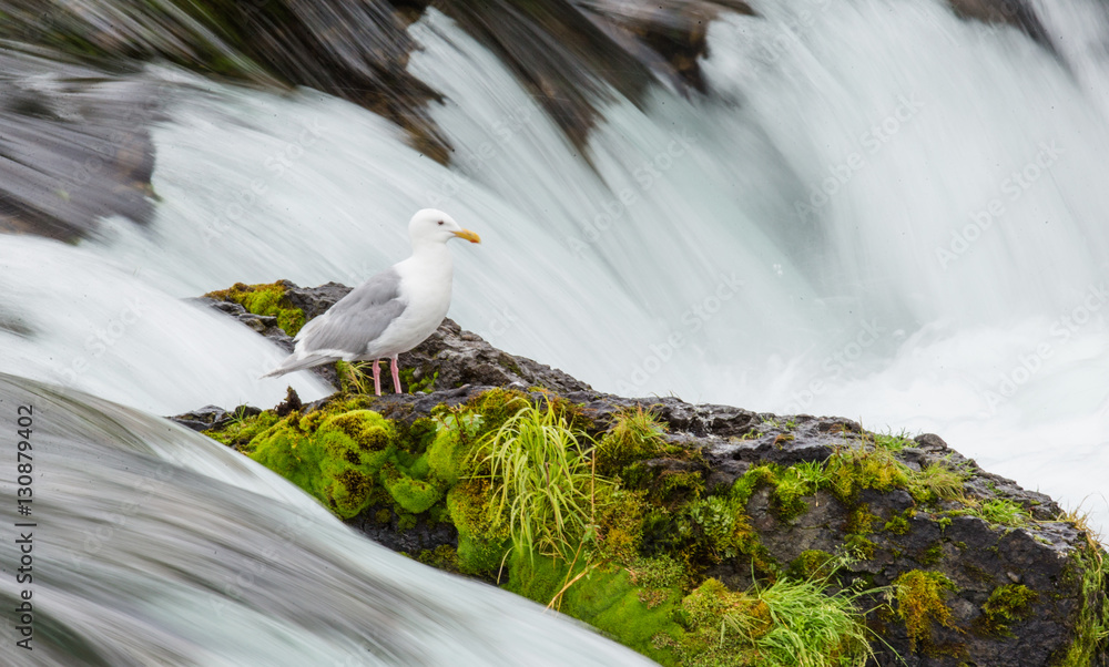 Seagull standing on a rock in the middle of the river. Alaska. Katmai National Park. USA. An excellent illustration.