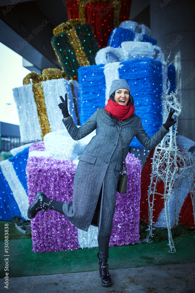 Dynamic portrait of girl at sunset in city