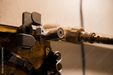 Close-Up View of Plumbing Pipes, Connectors, and Metal Fixtures Attached to Wall