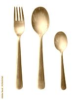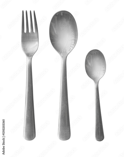 Fork, spoon and teaspoon creating elegant table setting on white background