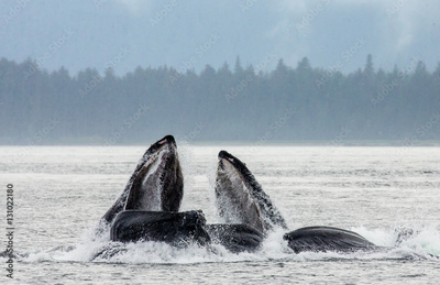 Humpback whales bubble net feeding. Chatham Strait area. Alaska. USA. An excellent illustration.