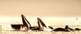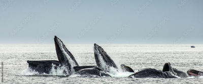 Humpback whales bubble net feeding. Chatham Strait area. Alaska. USA. An excellent illustration.
