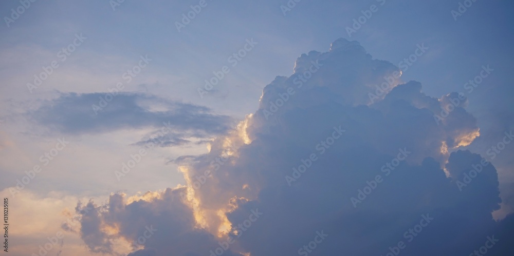 beautiful afternoon sky with white clouds and highlighted by sunlight