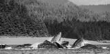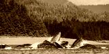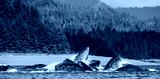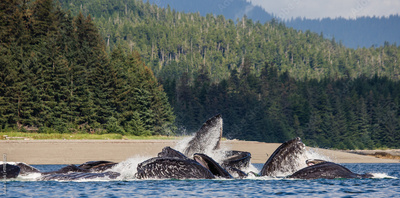 Humpback whales bubble net feeding. Chatham Strait area. Alaska. USA. An excellent illustration.
