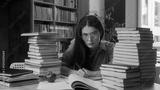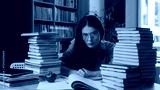 Caucasian woman sad girl high school student teacher writing lesson learning frustrated tired pupil nerd studying university college library books overwork education stress problem overload ask help