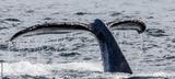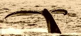 Tail humpback whale above the water surface closeup. Chatham Strait area. Alaska. USA. An excellent illustration.